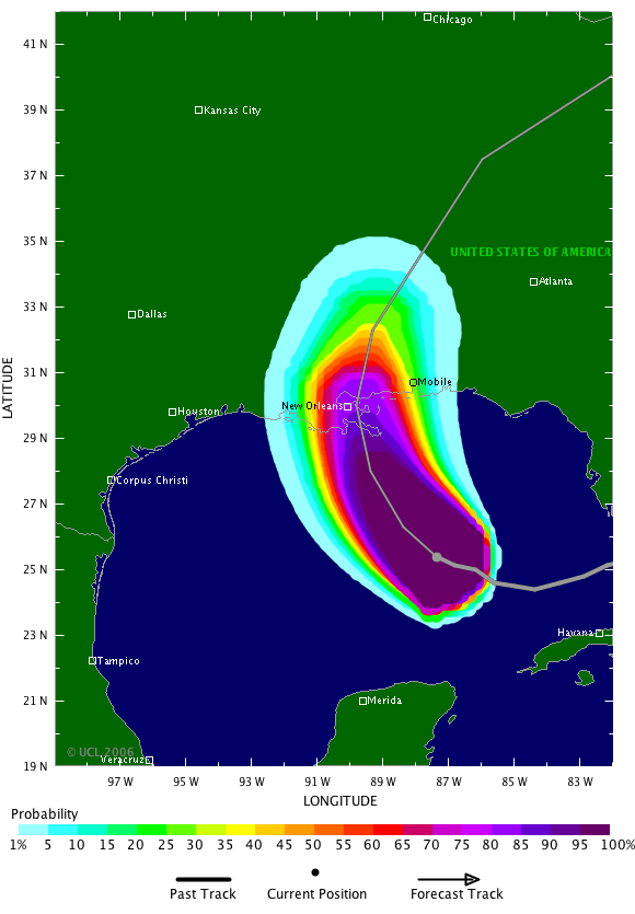 Intense Hurricane KATRINA: Probability of Cat 1 or above winds to 45 hours lead